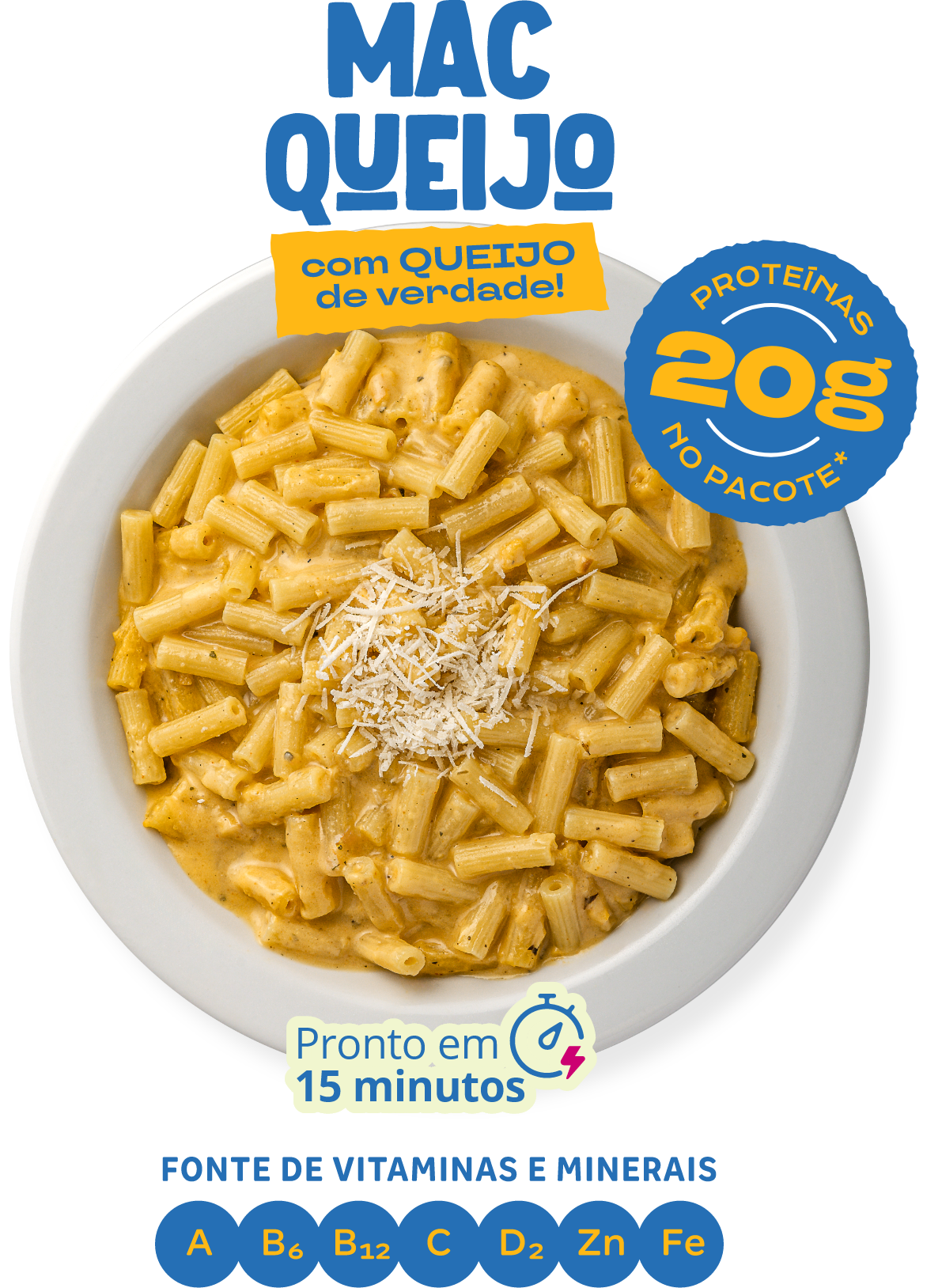 Com 20 g de proteína, fonte de vitaminas e minerais e a cremosidade que só um queijo de verdade pode oferecer. A revolução saudável do mac’n’cheese.