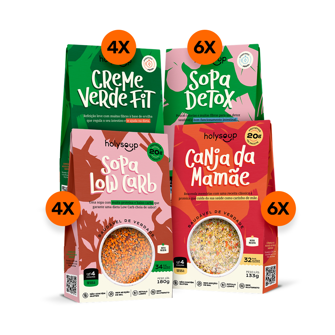 Além disso, nossas sopas são repletas de fibras solúveis e insolúveis, fundamentais para o bom funcionamento do intestino e para manter você saciado(a) por mais tempo.